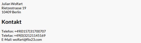 Der Nutzung von im Rahmen der Impressumspflicht veröffentlichten Kontaktdaten zur Übersendung von nicht ausdrücklich angeforderter Werbung und Informationsmaterialien wird hiermit widersprochen. Die Betreiber der Seiten behalten sich ausdrücklich rechtliche Schritte im Falle der unverlangten Zusendung von Werbeinformationen, etwa durch Spam-E-Mails, vor.